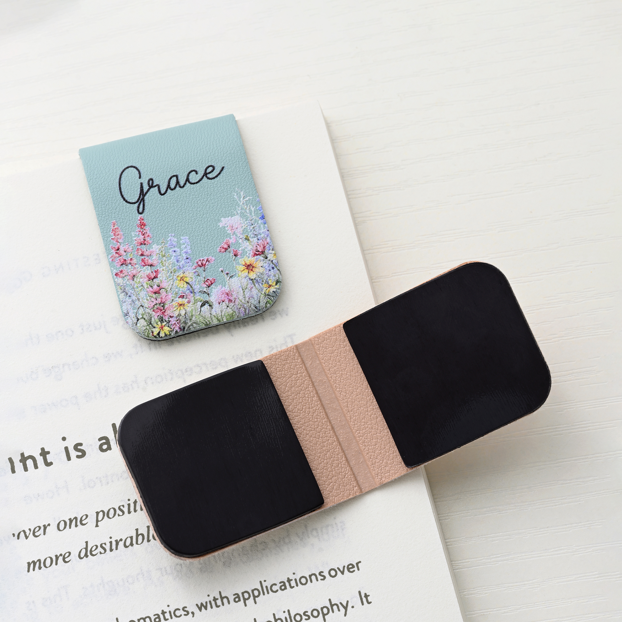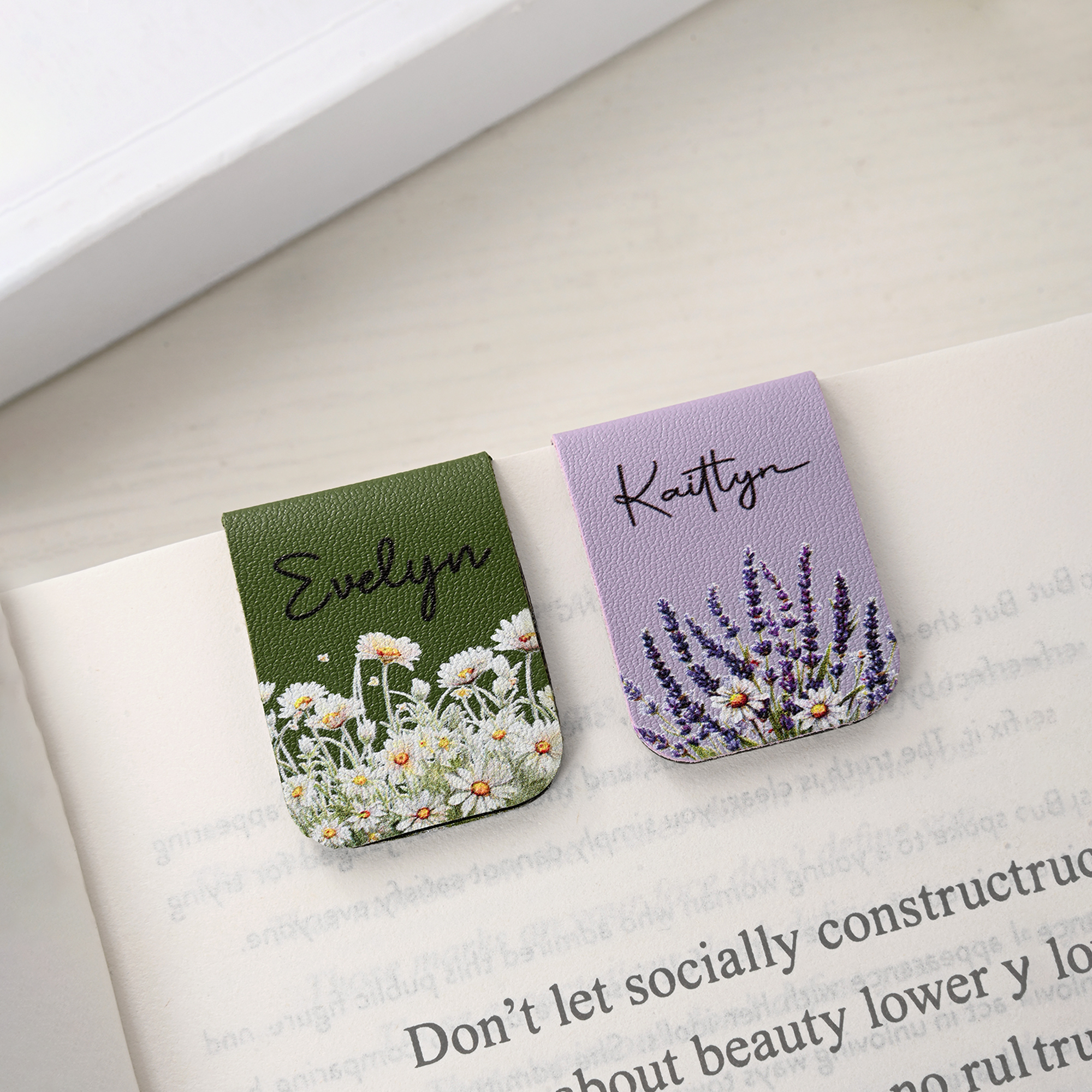 Floral Design - This magnetic leather bookmark showcases delicate wildflowers in a soft watercolor style, offering a graceful and meaningful accent for readers who love fine details and classic beauty.