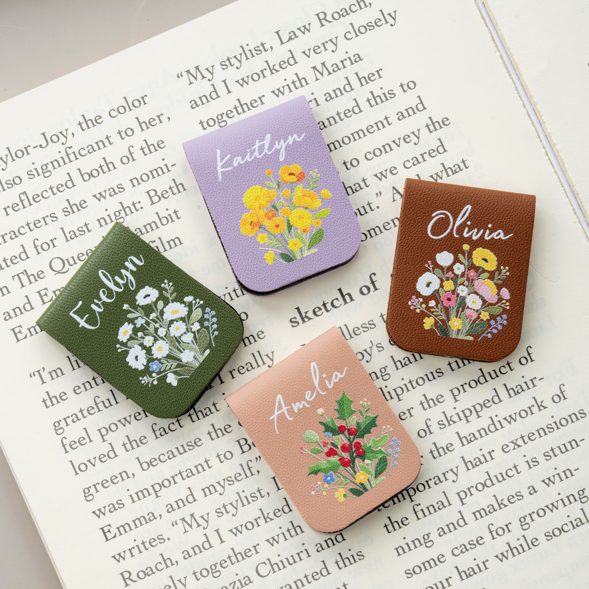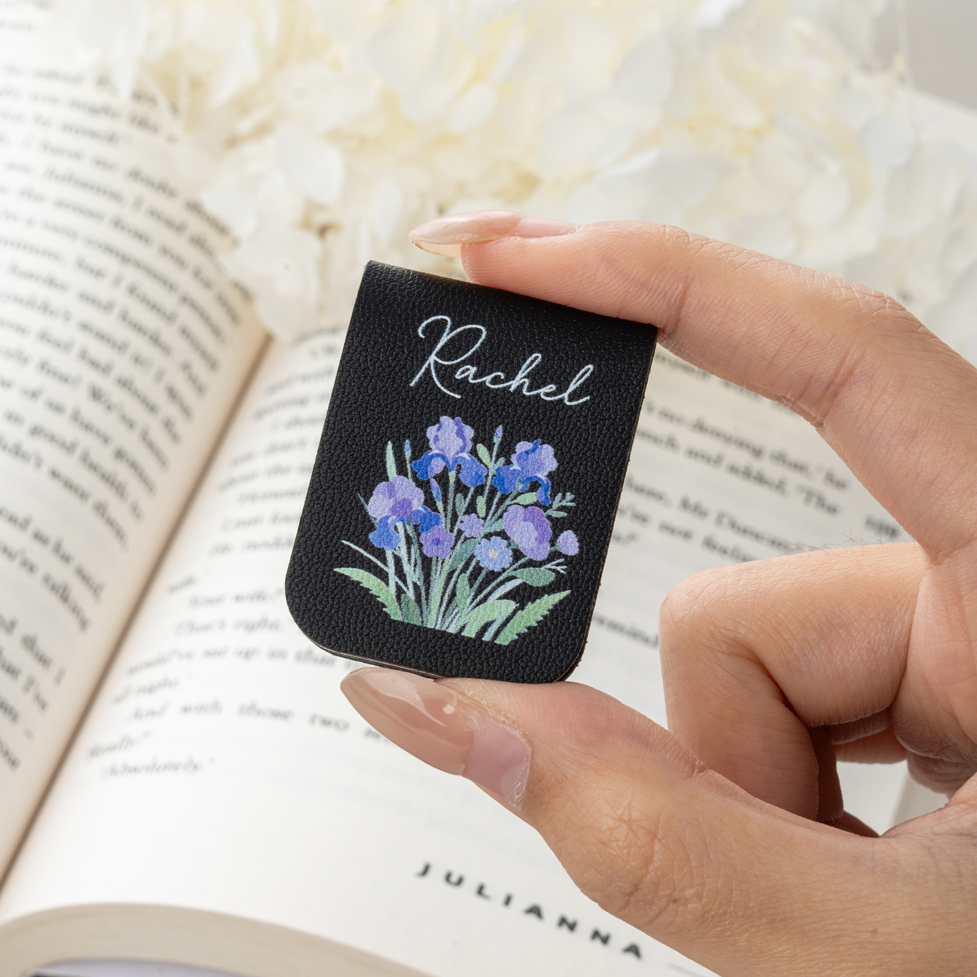 Birth Flower Beauty - This magnetic leather bookmark highlights soft watercolor birth flowers, offering a graceful and symbolic detail for readers who value meaningful design and classic style.
